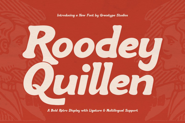 Roodey Quillen Font | Bold Retro Display, from Gracetypestudio, suitable for any projects such as: logos, branding projects, homeware designs, product packaging, mugs, quotes, posters, shopping bags, t-shirts, book covers, name card, invitation cards, greeting cards, label, photography, watermark, special events, and all your other lovely projects that need a Bold Retro taste.