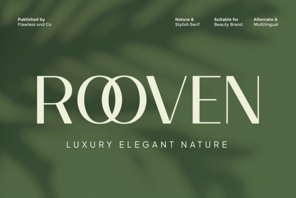 Rooven Font is an elegant serif font crafted to express luxury, refinement, and natural beauty. With its stylish letterforms and balanced proportions, Rooven delivers a sophisticated look that feels timeless yet modern. This font is designed to elevate visual identities with a calm, premium, and graceful character.