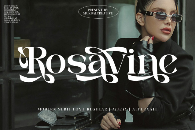 With its stylish regular characters and decorative alternates, Rosavine offers versatility — whether you’re aiming for a clean sophisticated look or a dramatic, ornamental statement.