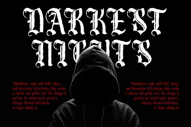 | Classification: | Blackletter / Gothic Fonts, Branding Fonts, Decorative Fonts, Retro / Vintage Fonts, Style / Aesthetic Fonts, Theme Fonts |