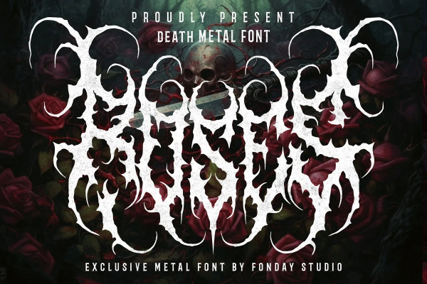 Roses Metal Font, our fierce and striking font that’s perfect for capturing the beauty and brutality of death metal. With its sharp and aggressive design, Roses is ideal for creating designs that reflect the raw intensity and passion of death metal bands.