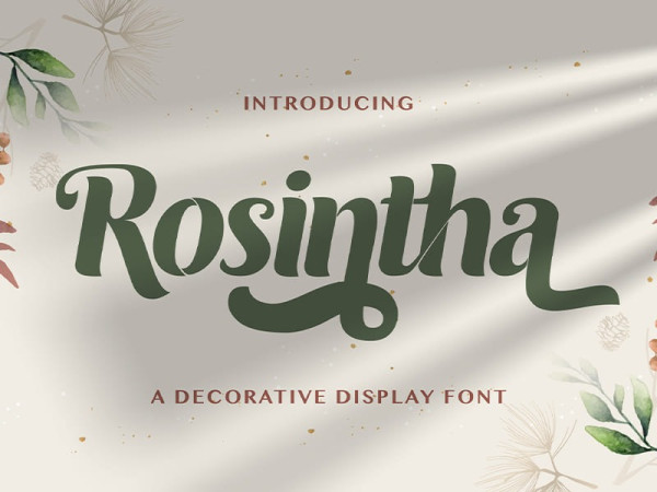 Rosintha Font is a playful display sans serif font with elegant style. Add this decorative display font to each of your creative ideas and notice how it makes them stand out. Fall in love with its dynamic charm, and make this fancy display part of your craft library now.