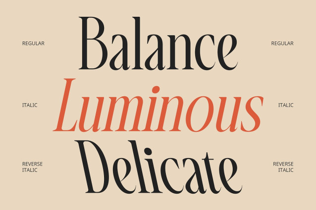 Rosmanic Font is a modern serif font that features a condensed, sleek form paired with sharp wedge-style serif terminals. Its compact structure and crisp detailing give it a distinctive and luxurious look that effortlessly bridges the gap between classic sophistication and contemporary style. Every letter is designed with a sense of balance and proportion, making it perfect for high-end applications where elegance and clarity must go hand in hand.