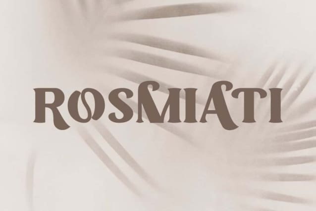 Rosmiati Font is a vintage coffee bean serif display font that is made creative with an artistic touch. This typeface can be used for various purposes such as apps, billboard, blog, brochure, cards design, headers, heading, invitation, logo, poster, product packaging, screen print, signage, stickers, title, watermark, website, and much more.