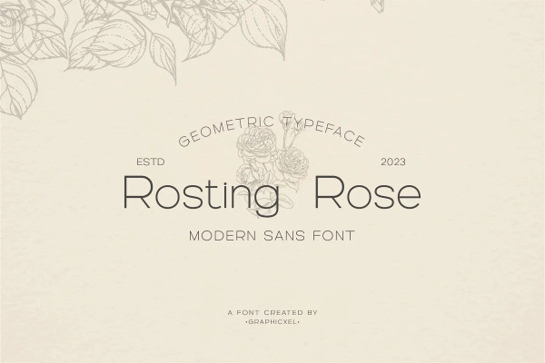 Rosting Rose Font – Modern Sans Serif Font. This font has a harmonious and beautiful shape that makes it perfect for all your needs for long text, branding, logotypes, print designs and more. This font is made in detail and measured by using geometric details to make this font look balanced and minimalist. This font is dedicated to the use of all needs in 2023, and will be the most popular and best selling font of the year.