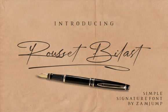 Rousset Bilast Font, is a handwritten signature font with a calligraphy flair, ideal for creating handwritten-style logos, wedding stationery, photographer watermarks logos, modern websites, and more.