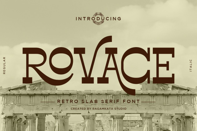 Rovace Font is a bold and expressive retro slab serif font that blends classic vintage curves with strong geometric structure. Designed with distinctive swashes, sharp slab edges, and elegant letterforms, Rovace brings a powerful nostalgic feel while remaining clean and modern. Perfect for branding, logos, posters, packaging, editorial titles, and high-impact typography, this font delivers a timeless aesthetic inspired by ancient architecture and traditional craftsmanship. Whether you’re creating premium branding or standout display designs, Rovace offers a unique visual identity that elevates every project.