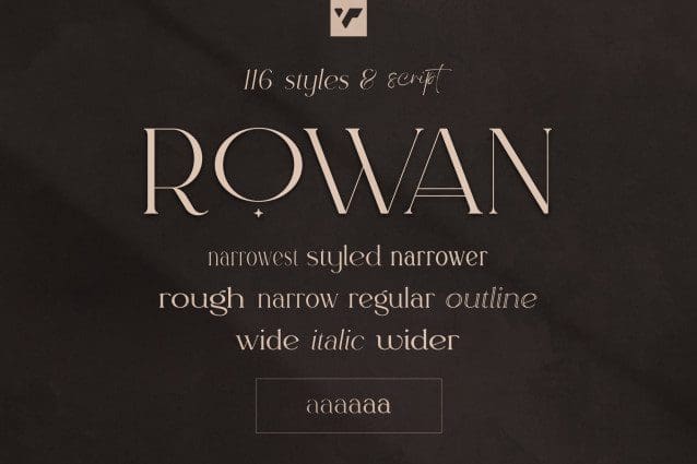 Rowan Font: The vintage-inspired typeface made for creatives! With a cool combination of 116 font styles and 87 languages, this unique typography provides the perfect finishing touch to your projects. Whether you’re after something narrow or wide – rough or smooth – we’ve got it all covered with 6 weight options, alternate glyphs, ligatures…you name it!