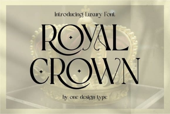 Royal Crown Font, this font is of serif type. The Serif look is inspired by famous logos. This typeface is carefully crafted to ensure premium quality and a luxurious feel. The ties in the serif make this typeface unique and stand out compared to regular serif fonts, suitable for headlines, weddings, social media, logos, posters, packaging, T-shirts, coffee shops, restaurants, magazine headers, signs or gift/posting cards, cafes and wedding or any kind of advertising purpose.