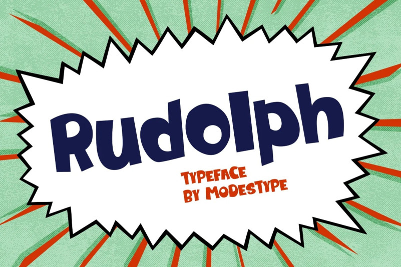 Rudolph Typeface – Fun Display Font. Font that pop in and bring a smile. Bold and funny shapes will make your word getting all the attention you need.
