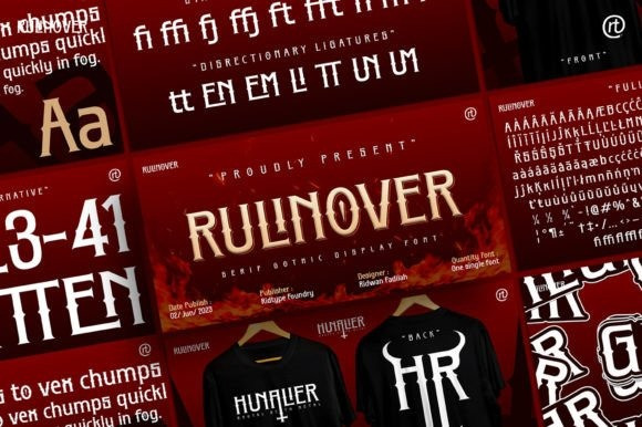 Rulinover Font is a serif font inspired by adrenaline-pumping gothic horror movies and games. With that comes Rulinover as a supporting tool to support typography based on genres of horror adventure, challenge and dare in a particular game or film.
