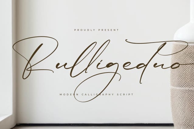 Rulligedro Script Font – Modern Calligraphy Script , from Letterena, is a Luxury Script font, suitable for any projects such as: logos, branding projects, homeware designs, product packaging, mugs, quotes, posters, shopping bags, t-shirts, book covers, name card, invitation cards, greeting cards, label, photography, watermark, special events, and all your other luxury and beautiful projects that need a Luxury Script taste.