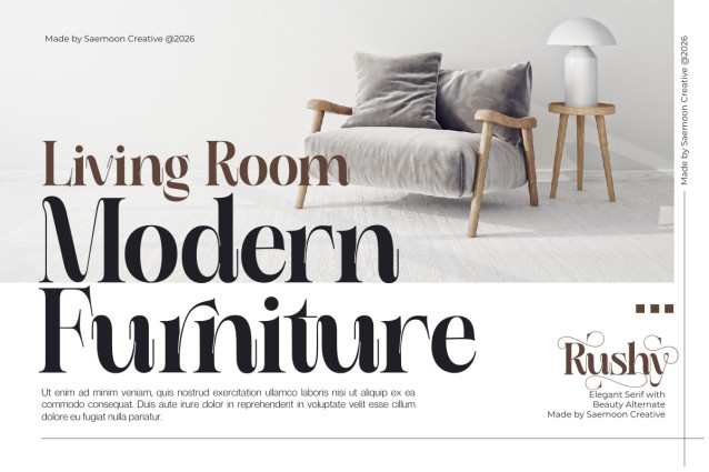 Rushy Font is an elegant display serif designed with a romantic and refined character. Featuring graceful curves, stylish swashes, and beautiful alternates, Rushy creates a luxurious and eye-catching look for your typography.