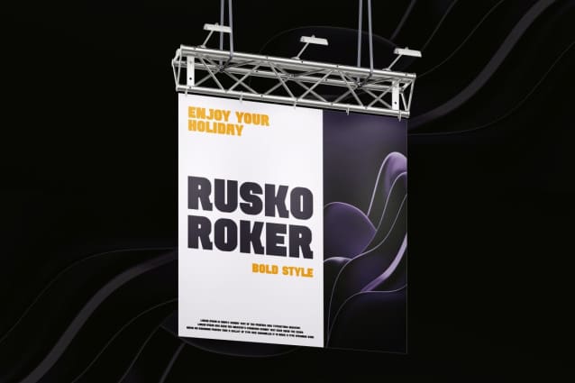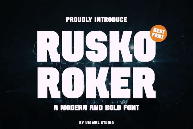 Rusko Roker Font – The font is suitable for badges, labels, logos, brands, magazines, posters, etc. Our fonts feature upper and lower case, numbers and punctuation, multilingual support and OpenType features. For amazing designs, you can mix them with other fonts as a complement.