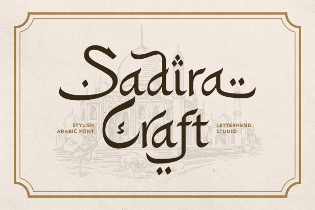 Sadira Craft Font rises with the spirit of desert winds and timeless calligraphy. Its sweeping strokes and sculpted curves carry the elegance of classical Arabic artistry, while subtle handcrafted details give it a bold, contemporary presence. It brings a deep cultural resonance to Ramadan visuals, heritage events, invitations, packaging text, branding compositions, and editorial headlines—offering a dramatic yet graceful voice that honors tradition while standing confidently in modern design.