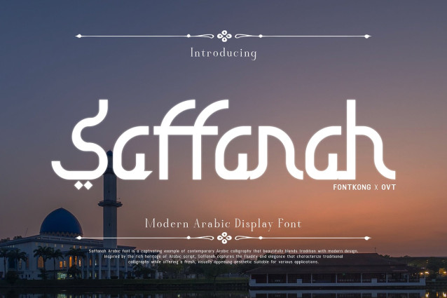 Designed to stand out in digital and print media, Saffanah adds character to any creative project. Its balanced curves and sharp edges make it suitable for branding campaigns, event promotions, and product packaging, ensuring your message leaves a lasting impression. Whether you’re creating bilingual content or purely Arabic designs, this font will provide an energetic and modern look.