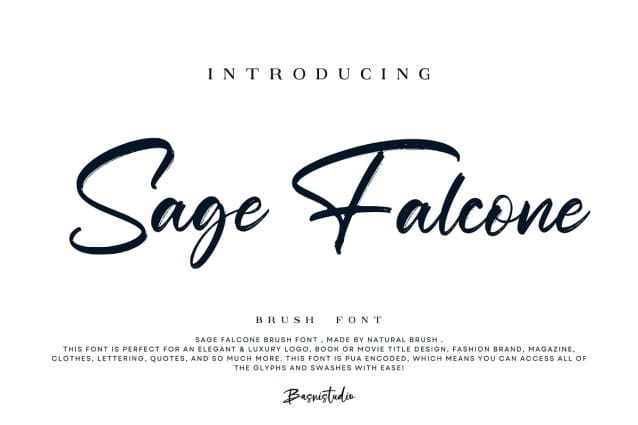 This font is made for personal use. Get the full version of the fonts if you want to use it for commercial purposes by purchasing the licenses here: https://creativemarket.com/BasniStudio/290758162-Sage-Falcone-Brush-Font?u=fontlot123