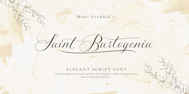 Saint Bartogenia Font is a handscript font that elegantly bridges the gap between handwriting and formality.