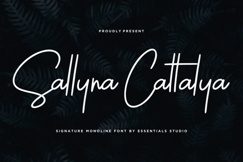 Sallyna Cattalya Font Is a A Monoline Signature Font. Sallyna Cattalya is perfect for product packaging, branding project, megazine, social media, wedding, or just used to express words above the background.