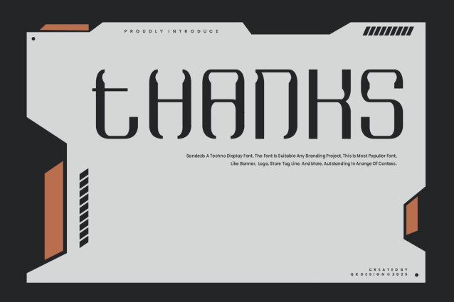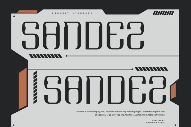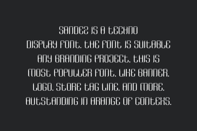 Sandez Futuristic Font is a futuristic and authentic display font. The font is suitable for any branding project like poster, logo, sport, and many more. Outstanding in a wide range of contexts.