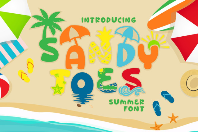 Sandy Toes Font – Quirky Summer Theme Font is a delightful typeface that transports you to the sunny shores of summer. This font features playful, rounded, and bold letterforms that capture the essence of fun and the warmth of the season. It’s versatile and can be used on its own or combined with any of its eight vibrant variations.