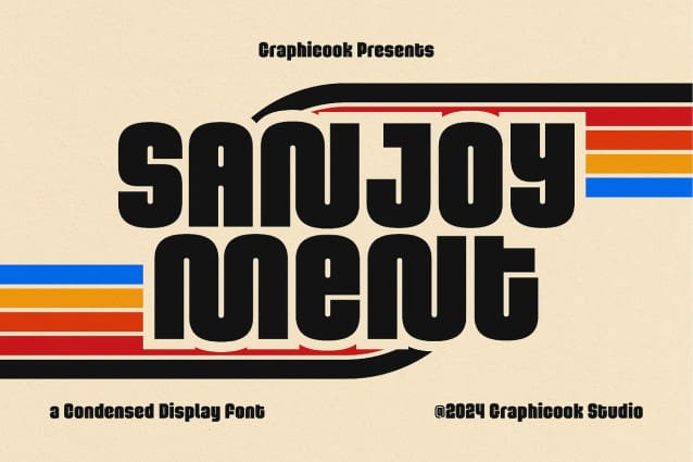 Sanjoyment is perfect for headlines, logotypes, magazines, packaging, quotes, movies, games, cover albums, book covers, and flyers, it’s a perfect solution for creating eye-catching designs that stand out in any context.