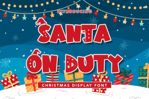 Santa on duty Display Font is a Christmas-themed display font with distinctive and playful characters. This typeface is perfect for branding projects, logos, wedding designs, media posts, advertisements, product packaging, product designs, labels, photography, watermarks, invitations, stationery, and any project.