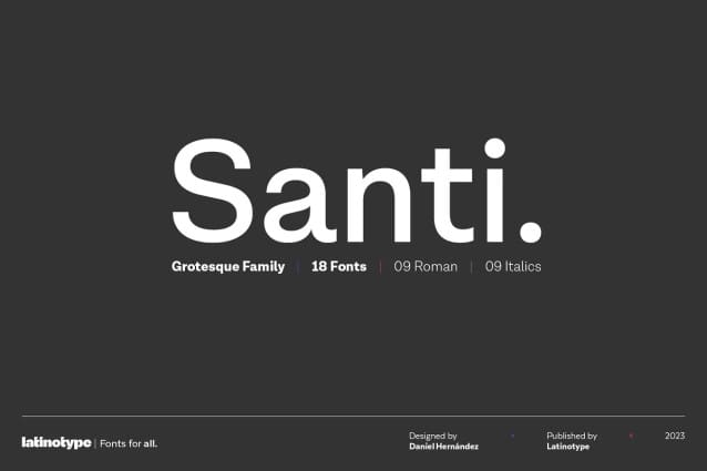 Santi’s versatility transcends current trends and gives it a timeless quality. This typeface blends effortlessly into classic or contemporary projects, offering a perfect balance between the familiar and the innovative.