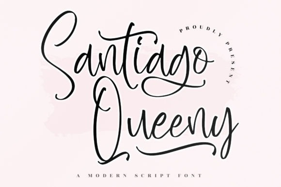 Santiago Queeny Font – Modern Script Font suitable for any projects such as logos, branding projects, homeware designs, product packaging, mugs, quotes, posters, shopping bags, t-shirts, book covers, name cards, invitation cards, greeting cards, labels, photography, watermark, special events, and all your other lovely projects that need a beautiful script taste.