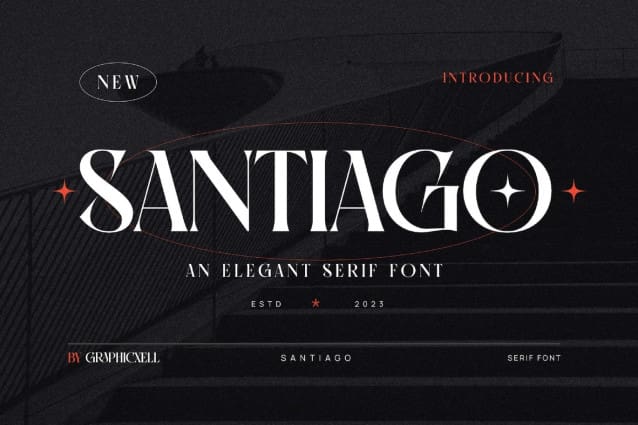 Santiago Typeface, inspired by the famous minimalist logo, perfect for designing templates, brochures, videos, advertising brands, logos, invitations, layouts, elegant crafts, beauty design, etc.