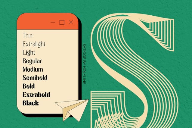 Satigof Font Family by Holyline is a playful sans serif font family, This font very playful and unique comes in nine weight, thin to black . It’s very unique, fancy, playful very easy to combine with multiple design style. Satigof perfect for headline, sub headline ,custom logo,packaging, quote, invitations, watermark,social media posts, label, anything for your creativity and Satigof Font is perfect font if you want something new with your project, and you can pairing this font with the weight, its very satisfy.