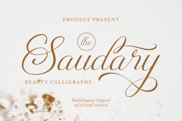 Saudary Font | Beauty Calligraphy suitable for any projects such as logos, branding projects, homeware designs, product packaging, mugs, quotes, posters, shopping bags, t-shirts, book covers, name cards, invitation cards, greeting cards, labels, photography, watermark, special events, and all your other lovely projects that need a beautiful script taste.