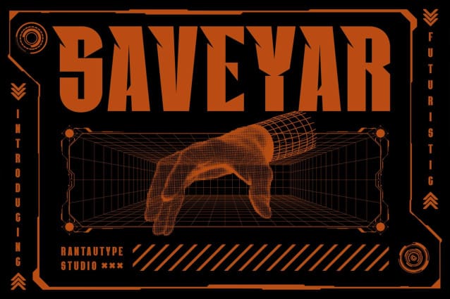 Saveyar Font is a futuristic display font inspired by robotics, artificial intelligence, and sci-fi visual design. Strong and unique, this futuristic font fits the bill. Its shape can make another world of technology design projects more attractive and stand out!