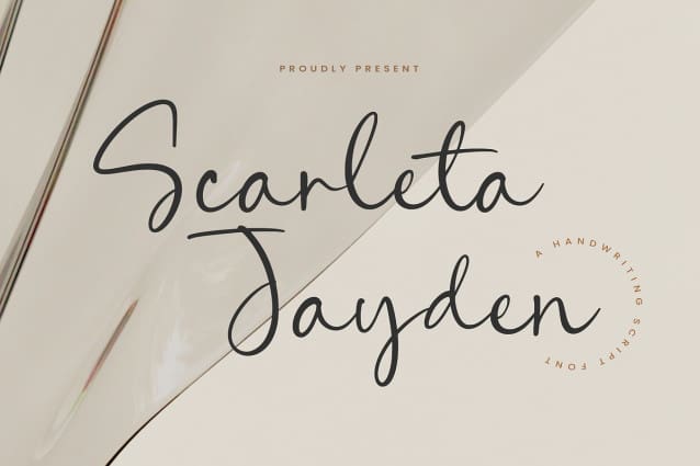 Scarleta Jayden Font is a Handwritten Script Font. This font is a stylish handwritten script font that exudes elegance and charm. Its fluid strokes and delicate curves make it perfect for creating sophisticated designs, from wedding invitations and logos to social media graphics and branding materials. With its natural flow and artistic flair, Scarleta Jayden adds a graceful touch to any project.
