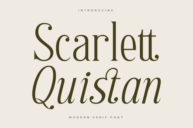Scarlett Quistan Font – Modern Serif Font , from Letterena, is a Luxury Serif font, suitable for any projects such as: logos, branding projects, homeware designs, product packaging, mugs, quotes, posters, shopping bags, t-shirts, book covers, name card, invitation cards, greeting cards, label, photography, watermark, special events, and all your other luxury and beautiful projects that need a Luxury Serif taste.