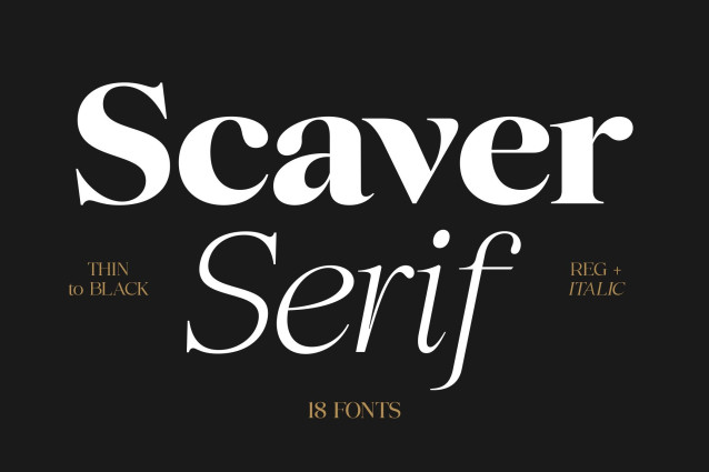 The design features high contrast strokes, smooth curves, and stylish serif details that make it perfect for fashion branding, editorial layouts, luxury logos, packaging, and magazine headlines. Whether you are designing for a premium brand, a boutique product, or an elegant website, Scaver delivers a timeless and professional look.