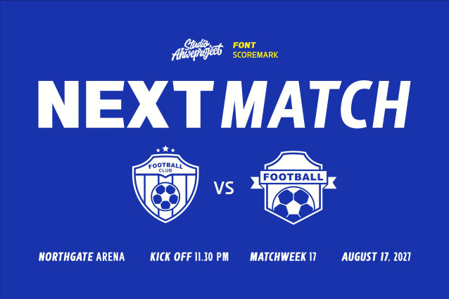 Scoremark Font is a bold sports display typeface designed to bring power, speed, and competitive energy into every headline. Inspired by stadium typography, professional match graphics, and team jerseys, this font is built to dominate large-scale layouts and capture instant attention.