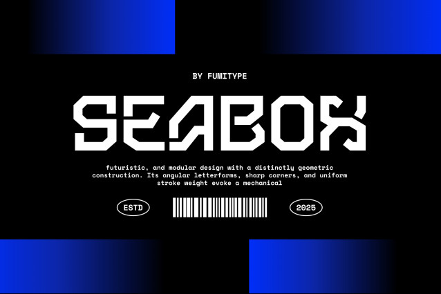 Seabox Font is a futuristic modular typeface built with bold geometric precision. Its angular letterforms, sharp edges, and industrial structure evoke a mechanical spirit that feels both digital and architectural. Perfect for tech branding, sci-fi visuals, posters, and experimental design, Seabox delivers a strong, modern edge to any project.