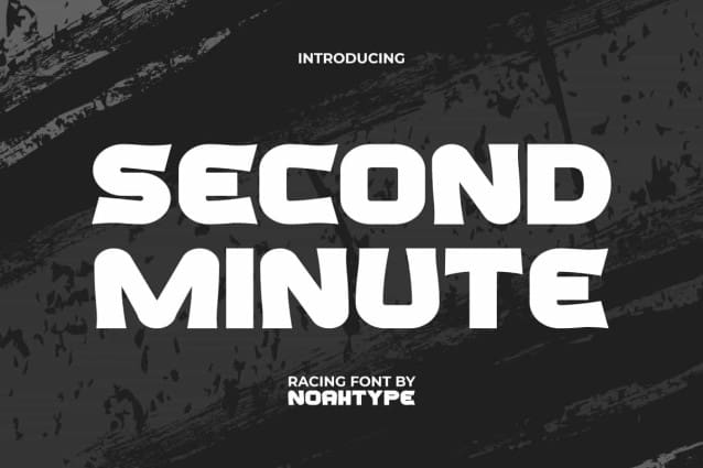 Second Minute Font is a unique modern racing font, created by NoahType. This font has a cool style with a unique shape that makes it different from the others. It will be good for any designs, such as brand image, custom design, invitation, label, marketing material, menu, poster, product packaging, quotes, signage, stationery, web, and many more!