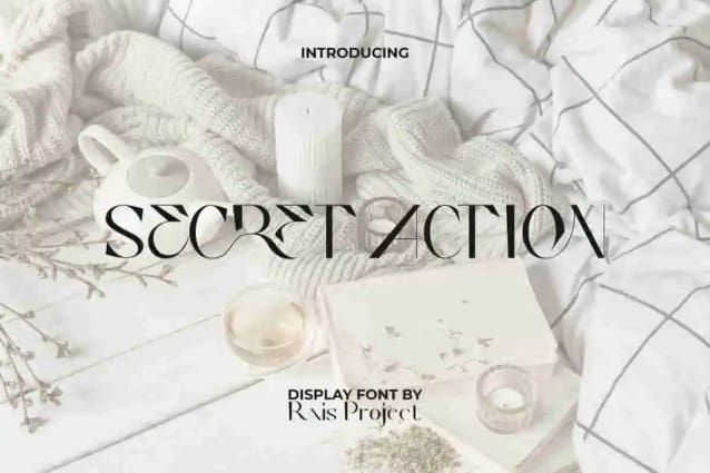 Secret Action Font is an aesthetic display font with beautiful unique serif looks and exclusive luxurious charm by RaisProject. This font has a combination of thin and thick lines, creating an attractive appearance. It will look good on invitation, stationery, poster, custom design, product packaging, quotes, signage, brand image, advertisement, label, marketing material, website page, and more!