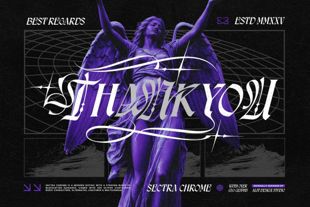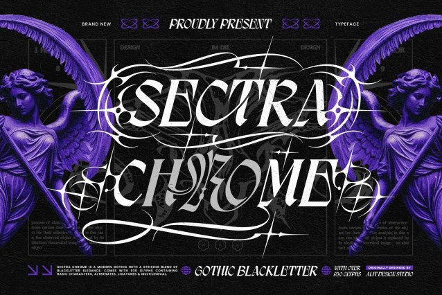 Sectra Chrome Font a typographic paradox that bridges the gap between medieval tradition and futuristic rebellion. This is not your average blackletter; it is a Modern Gothic masterpiece designed for the bold.
