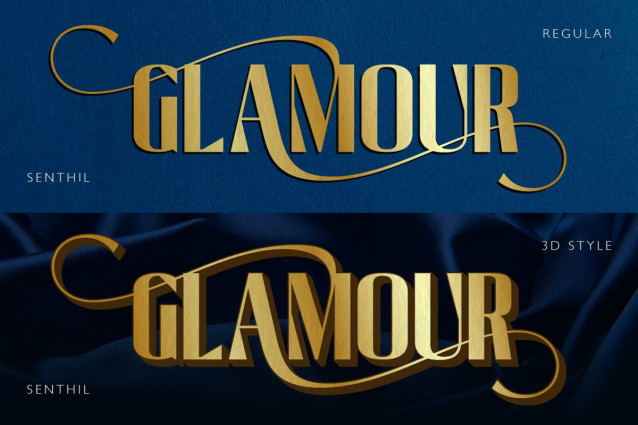 Senthil Font is a modern elegant sans serif font designed to bring a luxurious and high-end feel to your projects. It combines clean letterforms with beautiful flowing swashes, creating a perfect balance between classy and bold. This font is made for designers who want something sophisticated but still powerful. The smooth curves and stylish ligatures give your typography a premium, editorial look, perfect for branding, beauty campaigns, packaging, and glamorous events. You can use the regular style for a clean luxury look, or apply the 3D style to create dramatic and eye-catching designs.