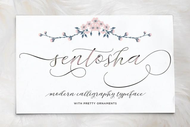 Sentosha Font is a modern calligraphy typeface, casual and pretty with swashes + ornaments. Can be used for many purposes. such as title, signature, logo, wedding invitations, letterhead, signage, labels, newsletters, posters, badges, etc. Sentosha Script features Open type, including the initial and terminal letters, alternates, ligatures and International support for most Western languages included.