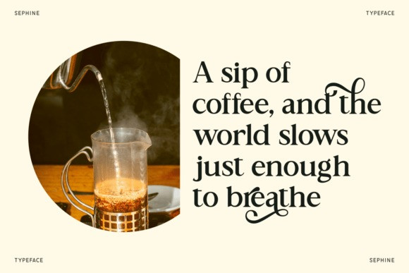 Sephine Font, a new modern serif font. The ethereal and artistic setting perfectly complements the font’s romantic and elegant character, which is highlighted by its beautiful ligatures and alternate swashes.