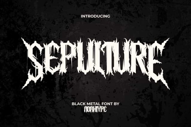 Sepulture Font is a hardcore scary black metal font by NoahType. Inspired by some hot bands, This font has an intimidating look with irregular lines that resemble roots and a spooky tree trunk shape. It will be perfect for any designs, such as brand image, cover, custom design, invitation, label, marketing material, menu, poster, product packaging, quotes, signage, web, and many more!