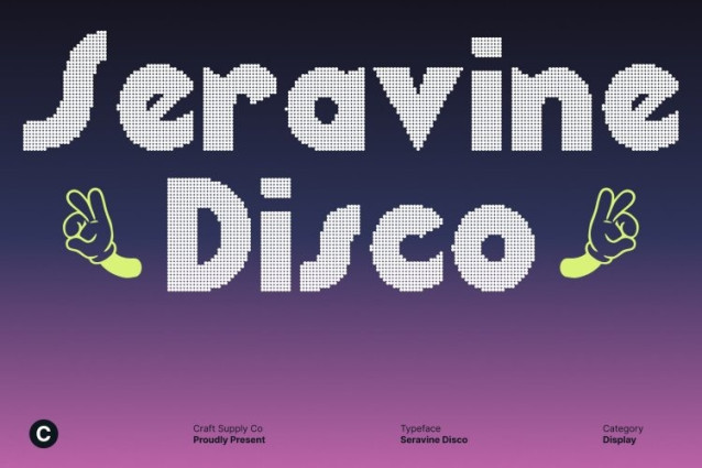 Seravine Disco Font is a bold modern sans serif font that blends strong, clean geometry with a playful disco flair. Its confident letterforms radiate energy and movement, while subtle shimmer-inspired styling adds a touch of sparkle and rhythm.