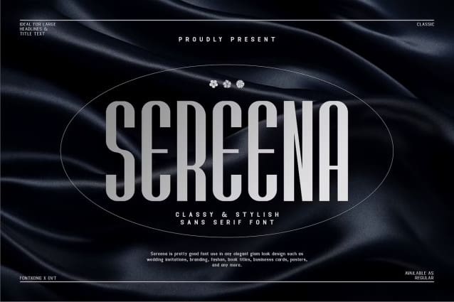 Sereena Font, a sophisticated sans serif font that redefines elegance with every stroke. With its clean lines and stylish curves, Sereena exudes class and sophistication, making it the perfect choice for upscale design projects.