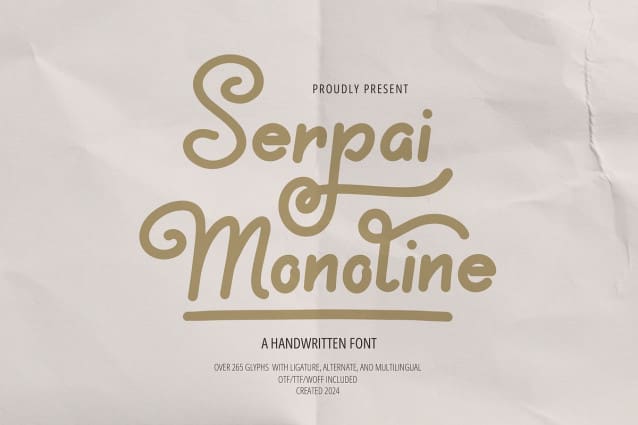 Serpai Monoline Font | Handwritten Font, from Gracetypestudio, suitable for any projects such as: logos, branding projects, homeware designs, product packaging, mugs, quotes, posters, shopping bags, t-shirts, book covers, name card, invitation cards, greeting cards, label, photography, watermark, special events, and all your other lovely projects that need a Handwritten Font taste.