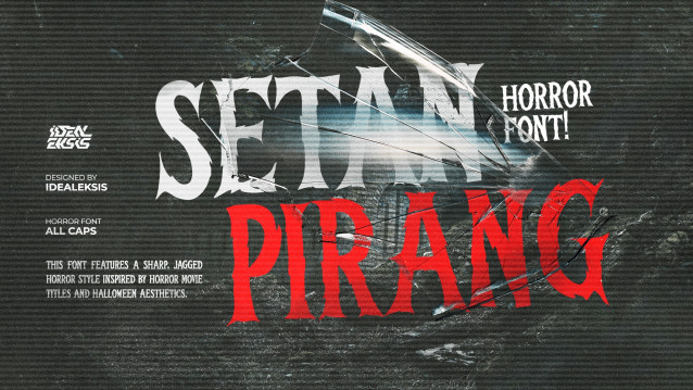 This font is used only for demos (Demo license). If you want to use this font for commercial use please contact: https://idealeksis.net/setan-pirang-horror-font/