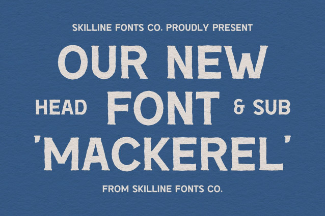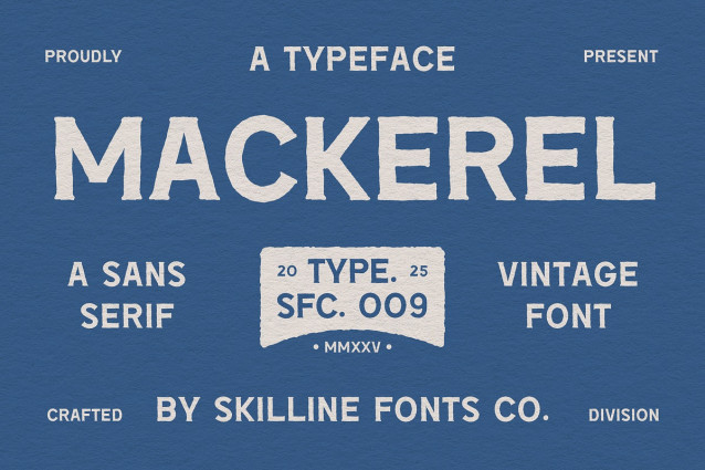 Inspired by mid-century signage, maritime design, and classic branding, Mackerel feels right at home on logos, packaging, apparel, and editorial layouts. Its sturdy, all-caps structure ensures clarity and impact, while the textured details add depth and authenticity to every composition.